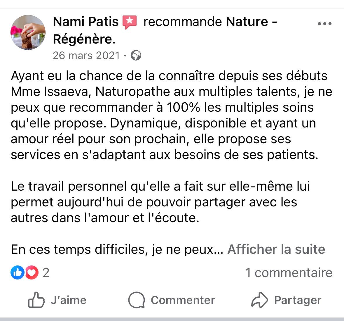 → Non, mais certaines mutuelles prennent en charge les consultations de naturopathie (selon contrat). Je fournis une facture.